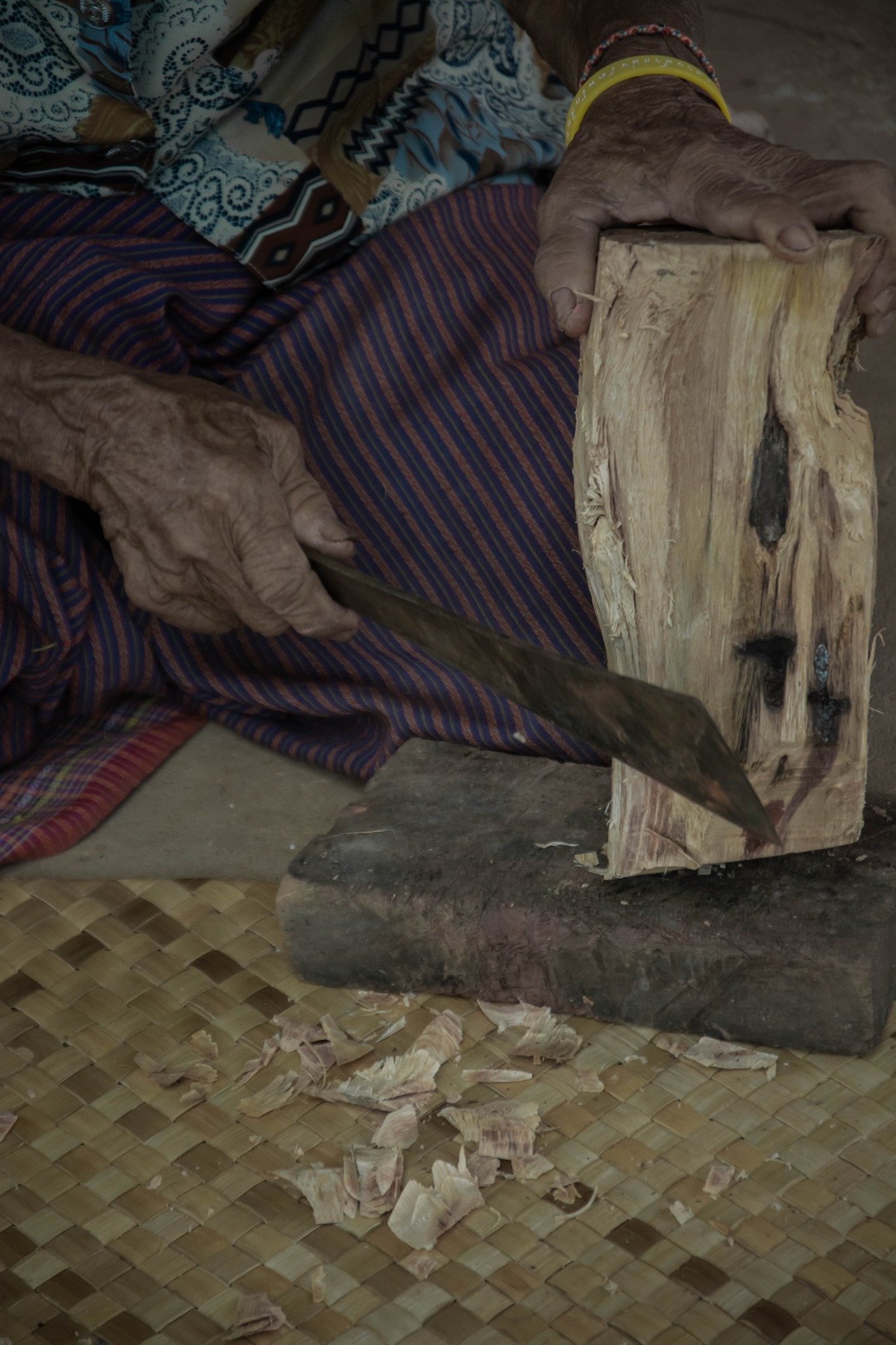 | คำอธิบาย : แก่นคูนที่ใช้ประกอบการเคี้ยวหมากในพิธีวางศิลาฤกษ์ หรือ พิธีวางหลักศิลาเลข (ภาษาพื้นถิ่น) สิมวัดวังไฮ จัดขึ้นเมื่อวันที่ 13 เมษายน 2562 คือพิธีที่ถือเป็นฤกษ์งามยามดีในการเริ่มต้นในการก่อสร้างสิม ซึ่งงานพิธีในครั้งนี้จัดพิธีในรูปแบบพื้นบ้านชาวบ้านวังไฮ อันประกอบไปด้วยการจัดเตรียมเครื่องบวงสรวงสักการะตลอดจนจัดเตรียมสถานที่ ที่สะท้อนถึงภูมิปัญญาในด้านต่างๆ อาทิเช่น ภูมิปัญญาในด้านการทำเครื่องสักการะ ภูมิปัญญาการจักสาน ภูมิปัญญาการถักทอ ภูมิปัญญาในการปั้นปูน ภูมิปัญญาในการทำขนม และการใช้สอยทรัพยากรในท้องถิ่นอื่นๆ อีกมากมาย อันสอดคล้องกับวิถีชีวิตความเป็นอยู่ของผู้คนในชนบทอีสาน |