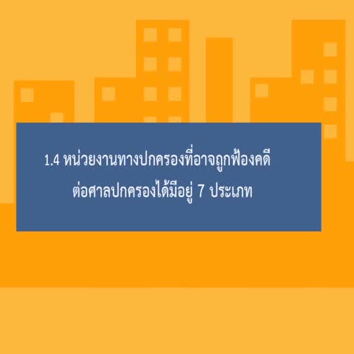 | ชื่อเรื่อง : หลักสูตร รู้จักศาลปกครอง บทที่ 1 ศาลปกครอง 1.4 หน่วยงานทางปกครองที่อาจถูกฟ้องคดีต่อศาลปกครอง |