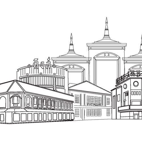 | ชื่อเรื่อง : Clip art ภาพวาดลายเส้นกลุ่มอาคารในย่านสามยอด-พาหุรัด-วังบูรพา |