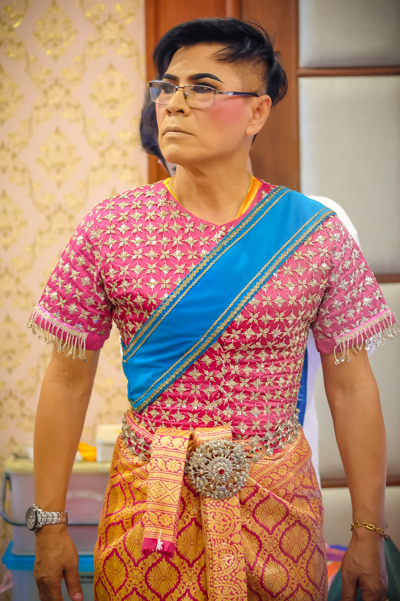 | คำอธิบาย : การแต่งกายนักแสดงลิเกทรงเครื่อง ของ คณะกรณ์กัญจนรัตน์ เรื่อง พระอภัยมณี ตอน หลงรูปนางละเวง ของงานการแสดงดนตรีสำหรับประชาชน ปีที่ ๖๒ วันเสาร์ที่ ๒ มีนาคม ๒๕๖๒ เวลา ๑๗.๐๐ น. ณ สังคีตศาลา บริเวณพิพิธภัณฑสถานแห่งชาติ พระนคร |