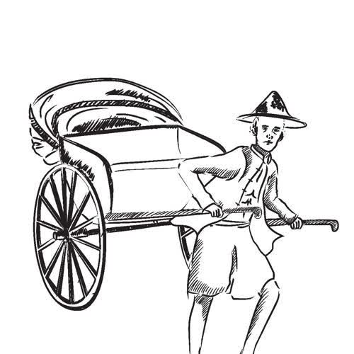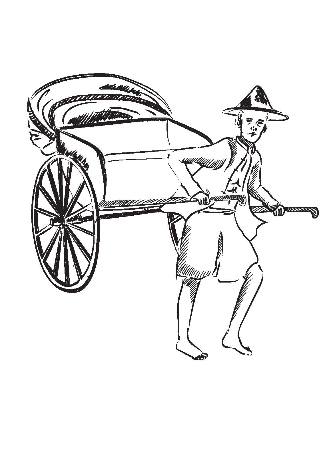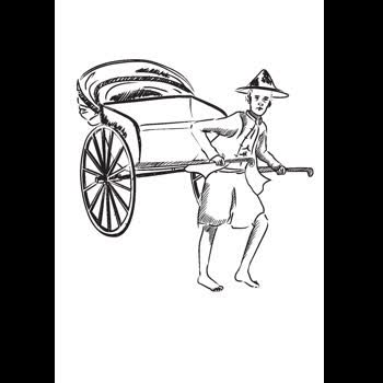 | ชื่อเรื่อง : Clip art ภาพวาดลายเส้นคนลากรถ |