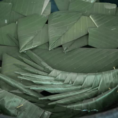 | คำอธิบาย : กลีบใบตองที่เตรียมไว้ประกอบเป็นเครื่องบวงสรวง ในพิธีวางศิลาฤกษ์ หรือ พิธีวางหลักศิลาเลข (ภาษาพื้นถิ่น) สิมวัดวังไฮ จัดขึ้นเมื่อวันที่ 13 เมษายน 2562 คือพิธีที่ถือเป็นฤกษ์งามยามดีในการเริ่มต้นในการก่อสร้างสิม ซึ่งงานพิธีในครั้งนี้จัดพิธีในรูปแบบพื้นบ้านชาวบ้านวังไฮ อันประกอบไปด้วยการจัดเตรียมเครื่องบวงสรวงสักการะตลอดจนจัดเตรียมสถานที่ ที่สะท้อนถึงภูมิปัญญาในด้านต่างๆ อาทิเช่น ภูมิปัญญาในด้านการทำเครื่องสักการะ ภูมิปัญญาการจักสาน ภูมิปัญญาการถักทอ ภูมิปัญญาในการปั้นปูน ภูมิปัญญาในการทำขนม และการใช้สอยทรัพยากรในท้องถิ่นอื่นๆ อีกมากมาย อันสอดคล้องกับวิถีชีวิตความเป็นอยู่ของผู้คนในชนบทอีสาน |