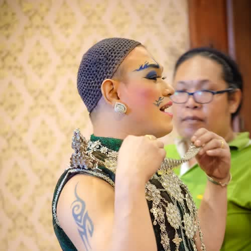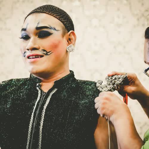 | คำอธิบาย : การแต่งกายนักแสดงลิเกทรงเครื่อง ของ คณะกรณ์กัญจนรัตน์ เรื่อง พระอภัยมณี ตอน หลงรูปนางละเวง ของงานการแสดงดนตรีสำหรับประชาชน ปีที่ ๖๒ วันเสาร์ที่ ๒ มีนาคม ๒๕๖๒ เวลา ๑๗.๐๐ น. ณ สังคีตศาลา บริเวณพิพิธภัณฑสถานแห่งชาติ พระนคร |
