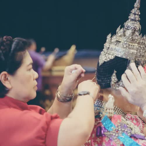 | คำอธิบาย : การแต่งกายนักแสดงลิเกทรงเครื่อง ของ คณะกรณ์กัญจนรัตน์ เรื่อง พระอภัยมณี ตอน หลงรูปนางละเวง ของงานการแสดงดนตรีสำหรับประชาชน ปีที่ ๖๒ วันเสาร์ที่ ๒ มีนาคม ๒๕๖๒ เวลา ๑๗.๐๐ น. ณ สังคีตศาลา บริเวณพิพิธภัณฑสถานแห่งชาติ พระนคร |