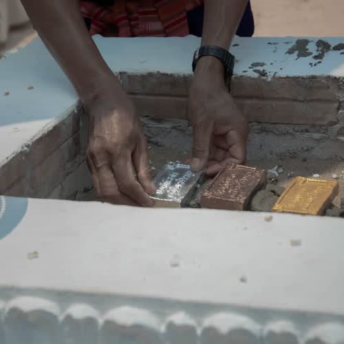 "การวางอิฐเงินอิฐทองในแท่นศิลาฤกษ์".