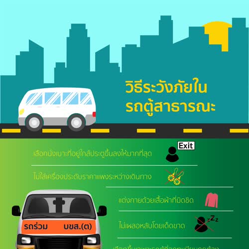 | คำสำคัญ : Infographic, อันตราย, การนั่งรถตู้, รถสาธารณะ, ข้อควรระวัง, รถร่วม บขส., รถตู้, อินโฟกราฟิก, ขสมก., ระวังภัยเมื่อนั่งรถตู้ |