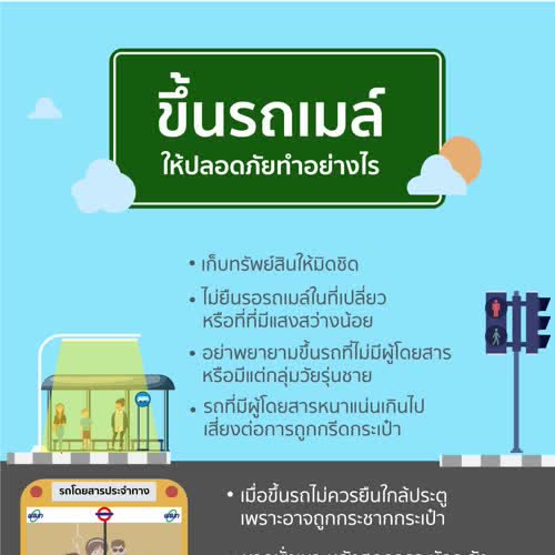 | คำสำคัญ : ระวังภัย, รถเมล์, รถสาธารณะ, ข้อควรระวัง, การขึ้นรถเมล์, รถโดยสารประจำทาง, ขสมก., อินโฟกราฟิก, Infographic, ความปลอดภัย |