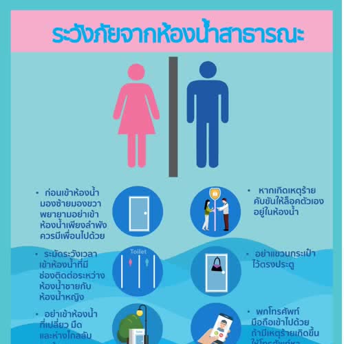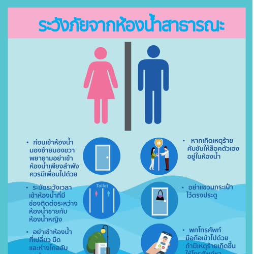| คำสำคัญ : ข้อควรปฏิบัติ, ป้องกันตนเอง, อินโฟกราฟิก, ห้องน้ำ, ความปลอดภัย, เข้าห้องน้ำ, ห้องน้ำสาธารณะ, หลีกเลี่ยงอันตราย, Infographic, ภัยอันตราย, ระวังภัย |