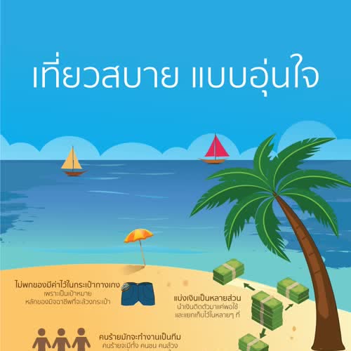 Infographic การเตือนภัยอาชญากรรม เรื่อง เคล็ดลับที่ต้องรู้ระหว่างท่องเที่ยว ได้รับใบอนุญาตภายใต้ ให้เผยแพร่-โดยต้องระบุที่มาแต่ห้ามดัดแปลงและห้ามใช้เพื่อการค้า 3.0 Thailand.