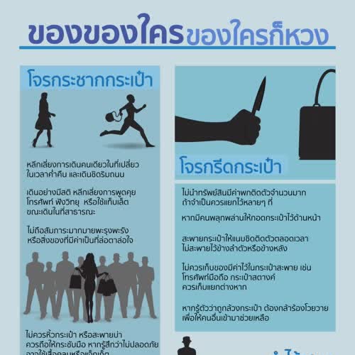| คำสำคัญ : Infographic, ทรัพย์สินมีค่า, ความประมาท, โจร, ป้องกันตัวเอง, เหตุร้าย, อินโฟกราฟิก, โจรกรีดกระเป๋า, ความปลอดภัย, ข้อควรระวัง, เลี่ยงอันตราย, โจรกระชากกระเป๋า, ภัยอันตราย, คนร้าย, อันตรายใใกล้ตัว |