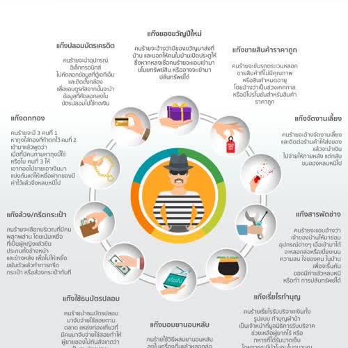 | คำสำคัญ : คนร้าย, ธนบัตรปลอม, ผู้หญิง, กลอุบาย, Infographic, อินโฟกราฟิก, มิจฉาชีพ, โจร, หลอกล่อ, ลักทรัพย์, หลอกลวง, ตกทอง, ประเภทของมิจฉาชีพ, เหยื่อ, ปล้นทรัพย์, ลักขโมย, กลโกง, อันตราย, ทรัพย์สินมีค่า, ล้วงกระเป๋า |