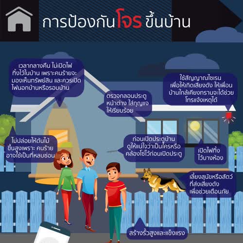 | คำสำคัญ : คนร้าย, บ้าน, โจรขึ้นบ้าน, โจรกรรม, อินโฟกราฟิก, ปล้นบ้าน, ข้อควรปฏิบัติ, ป้องกันภัย, ป้องกันโจร, ที่อยู่อาศัย, โจร, เหตุด่วนเหตุร้าย, Infographic |