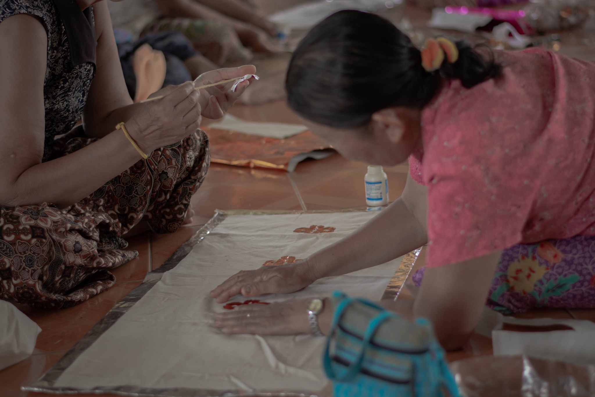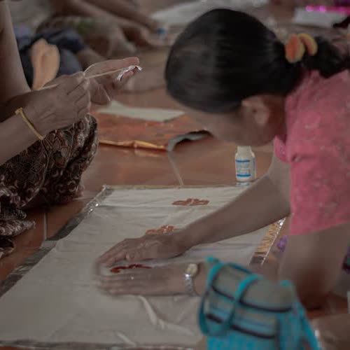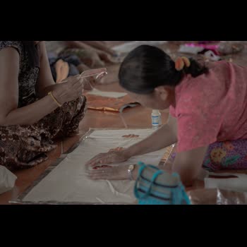 | ชื่อเรื่อง : การตัดกระดาษทองประดับบนผืนผ้า |