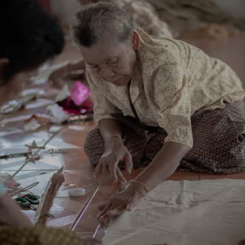 | ชื่อเรื่อง : การตัดกระดาษทองประดับบนผืนผ้า |
