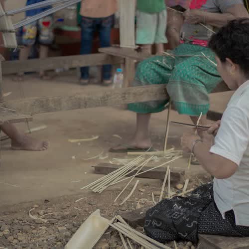 | คำอธิบาย : เหลาไม้ไผ่ ในพิธีวางศิลาฤกษ์ หรือ พิธีวางหลักศิลาเลข (ภาษาพื้นถิ่น) สิมวัดวังไฮ จัดขึ้นเมื่อวันที่ 13 เมษายน 2562 คือพิธีที่ถือเป็นฤกษ์งามยามดีในการเริ่มต้นในการก่อสร้างสิม ซึ่งงานพิธีในครั้งนี้จัดพิธีในรูปแบบพื้นบ้านชาวบ้านวังไฮ อันประกอบไปด้วยการจัดเตรียมเครื่องบวงสรวงสักการะตลอดจนจัดเตรียมสถานที่ ที่สะท้อนถึงภูมิปัญญาในด้านต่างๆ อาทิเช่น ภูมิปัญญาในด้านการทำเครื่องสักการะ ภูมิปัญญาการจักสาน ภูมิปัญญาการถักทอ ภูมิปัญญาในการปั้นปูน ภูมิปัญญาในการทำขนม และการใช้สอยทรัพยากรในท้องถิ่นอื่นๆ อีกมากมาย อันสอดคล้องกับวิถีชีวิตความเป็นอยู่ของผู้คนในชนบทอีสาน |
