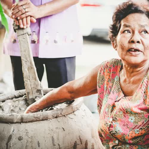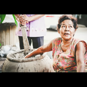 | คำอธิบาย : การทำตุ๊กตาชาววัง ในขั้นตอนที่ 1 การเตรียมดิน ของชาวบ้านบางเสด็จ อ.ป่าโมก จ.อ่างทอง |