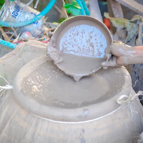 | คำอธิบาย : การทำตุ๊กตาชาววัง ในขั้นตอนที่ 1 การเตรียมดิน ของชาวบ้านบางเสด็จ อ.ป่าโมก จ.อ่างทอง |
