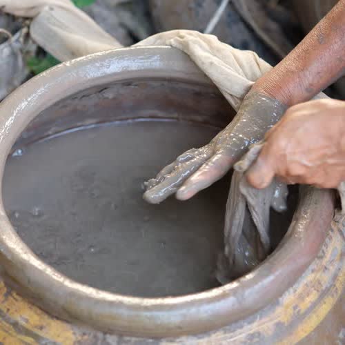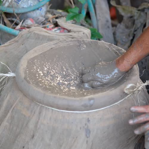 | คำอธิบาย : การทำตุ๊กตาชาววัง ในขั้นตอนที่ 1 การเตรียมดิน ของชาวบ้านบางเสด็จ อ.ป่าโมก จ.อ่างทอง |