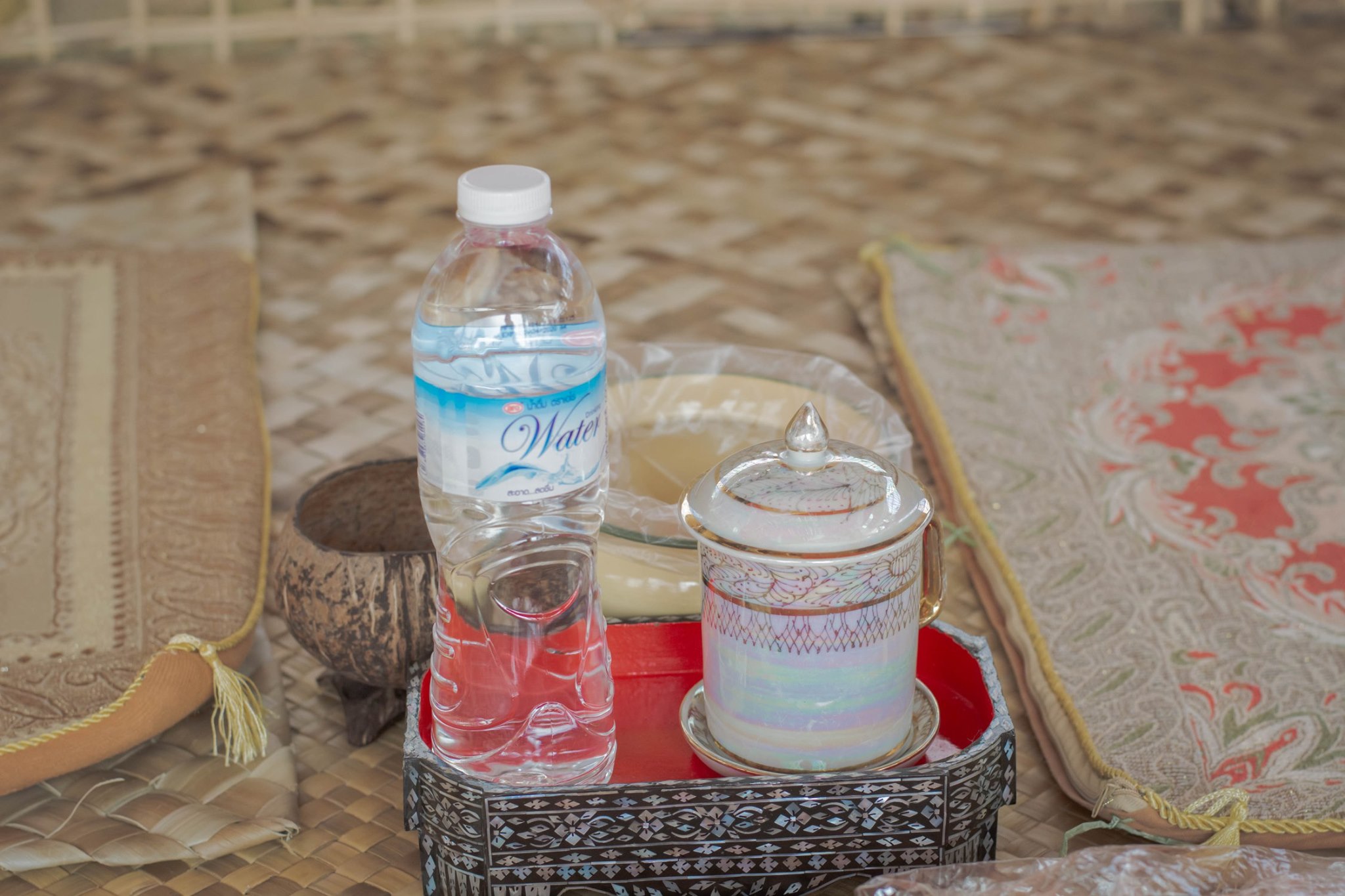| คำอธิบาย : การเตรียมผามสำหรับพระสงฆ์ ในพิธีวางศิลาฤกษ์ หรือ พิธีวางหลักศิลาเลข (ภาษาพื้นถิ่น) สิมวัดวังไฮ จัดขึ้นเมื่อวันที่ 13 เมษายน 2562 คือพิธีที่ถือเป็นฤกษ์งามยามดีในการเริ่มต้นในการก่อสร้างสิม ซึ่งงานพิธีในครั้งนี้จัดพิธีในรูปแบบพื้นบ้านชาวบ้านวังไฮ อันประกอบไปด้วยการจัดเตรียมเครื่องบวงสรวงสักการะตลอดจนจัดเตรียมสถานที่ ที่สะท้อนถึงภูมิปัญญาในด้านต่างๆ อาทิเช่น ภูมิปัญญาในด้านการทำเครื่องสักการะ ภูมิปัญญาการจักสาน ภูมิปัญญาการถักทอ ภูมิปัญญาในการปั้นปูน ภูมิปัญญาในการทำขนม และการใช้สอยทรัพยากรในท้องถิ่นอื่นๆ อีกมากมาย อันสอดคล้องกับวิถีชีวิตความเป็นอยู่ของผู้คนในชนบทอีสาน |