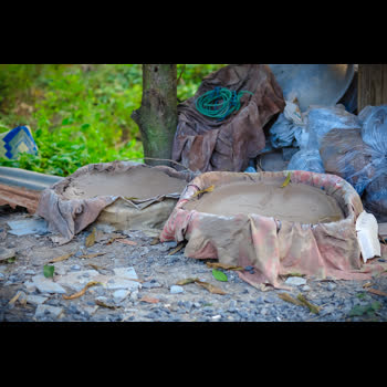 | คำอธิบาย : การทำตุ๊กตาชาววัง ในขั้นตอนที่ 1 การเตรียมดิน ของชาวบ้านบางเสด็จ อ.ป่าโมก จ.อ่างทอง |