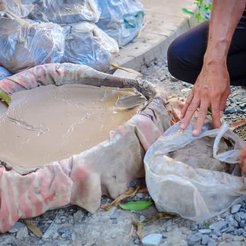 | คำอธิบาย : การทำตุ๊กตาชาววัง ในขั้นตอนที่ 1 การเตรียมดิน ของชาวบ้านบางเสด็จ อ.ป่าโมก จ.อ่างทอง |