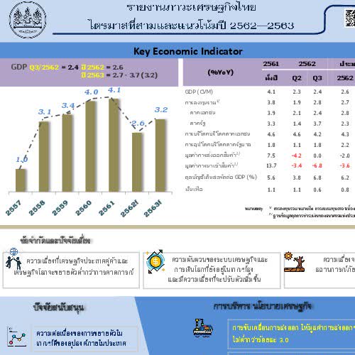 | คำอธิบาย : ภาวะเศรษฐกิจไทยไตรมาสที่ 3/2562 และแนวโน้มปี 2562 - 2563 |