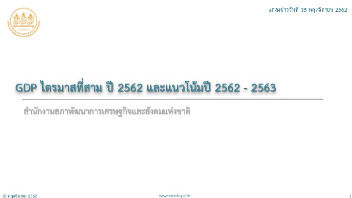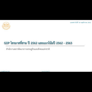 | คำอธิบาย : ภาวะเศรษฐกิจไทยไตรมาสที่ 3/2562 และแนวโน้มปี 2562 - 2563 |