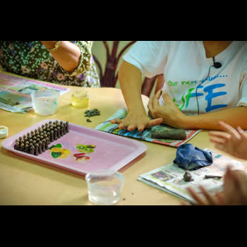 | คำอธิบาย : การทำตุ๊กตาชาววัง ในขั้นตอนที่ 4 การปั้นตัวตุ๊กตา ของชาวบ้านบางเสด็จ อ.ป่าโมก จ.อ่างทอง |