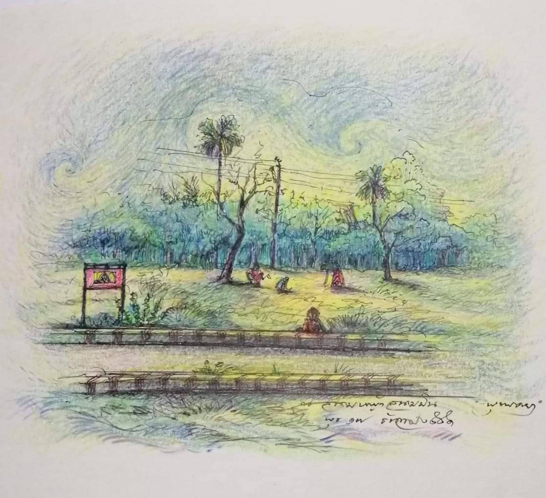 จิตรกรรมสนามหญ้า สนามบิน พุทธคยา อินเดีย