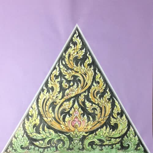 | คำสำคัญ : ภาพวาด, ลายไทย, ภาพจิตรกรรม, ลายพุ่มข้าวบิณฑ์, งานจิตรกรรม |