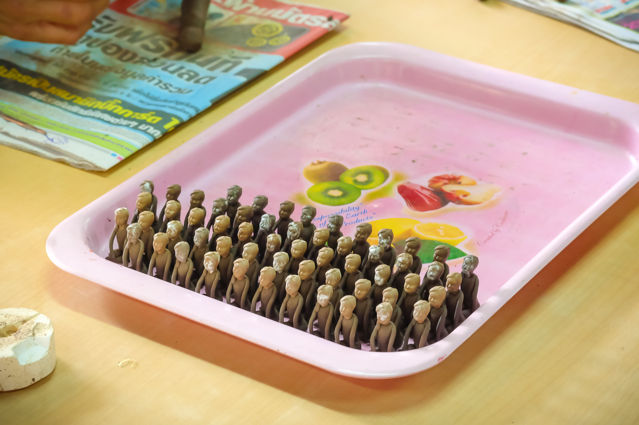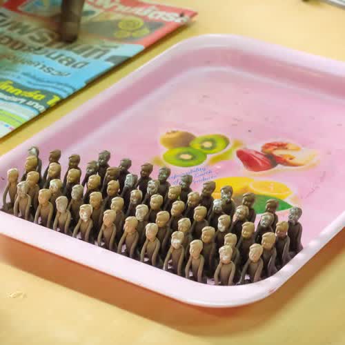 | คำอธิบาย : การทำตุ๊กตาชาววัง ในขั้นตอนที่ 4 การปั้นตัวตุ๊กตา ของชาวบ้านบางเสด็จ อ.ป่าโมก จ.อ่างทอง |