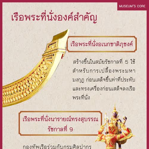 | คำสำคัญ : Infographic, เรือ, ประวัติศาสตร์, ประเพณีไทย, สื่อการเรียนรู้, กระบวนพยุหยาตราชลมาค, มิวเซียมสยาม, เรือสุพรรณหงส์, เรือพระที่นั่ง, วัฒนธรรม, พิธีบรมราชาภิเษก, เรือนารายณ์ทรงสุบรรณ, อินโฟกราฟิก, เรืออเนกชาติภุชงค์, เรืออนันตนาคราช, เรือพระราชพิธี, ประเพณีราชสำนัก |