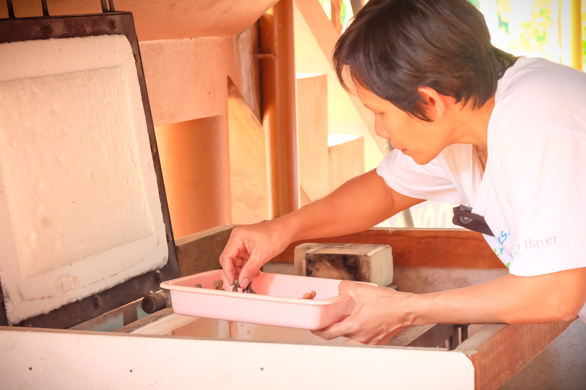 | คำอธิบาย : การทำตุ๊กตาชาววัง ในขั้นตอนที่ 5 การเผาตุ๊กตา ของชาวบ้านบางเสด็จ อ.ป่าโมก จ.อ่างทอง |