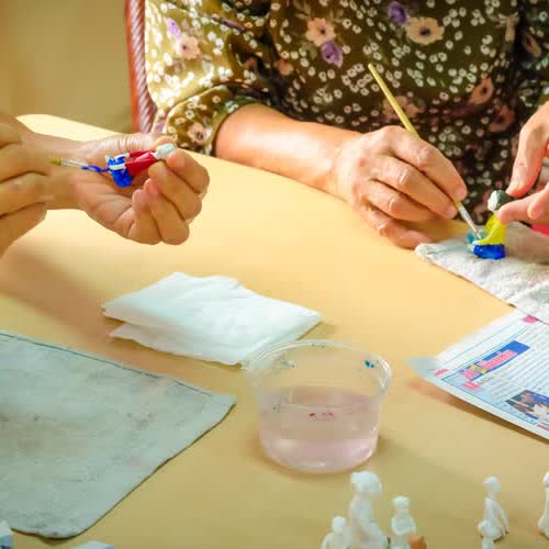 | คำอธิบาย : การทำตุ๊กตาชาววัง ในขั้นตอนที่ 6 การระบายสีและตกแต่ง ของชาวบ้านบางเสด็จ อ.ป่าโมก จ.อ่างทอง |