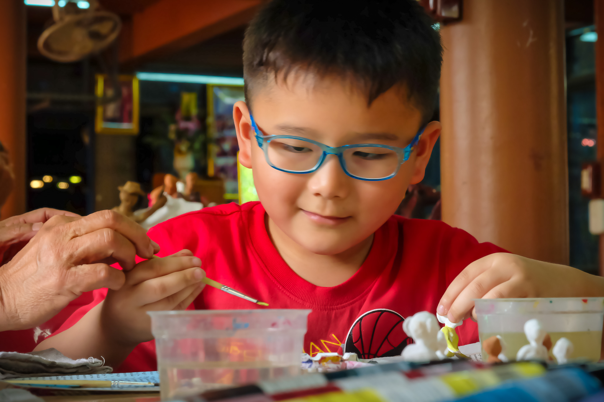 | คำอธิบาย : การทำตุ๊กตาชาววัง ในขั้นตอนที่ 6 การระบายสีและตกแต่ง ของชาวบ้านบางเสด็จ อ.ป่าโมก จ.อ่างทอง |