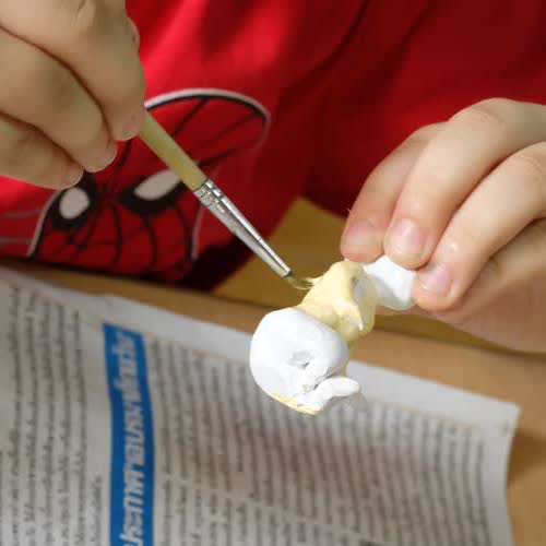 | คำอธิบาย : การทำตุ๊กตาชาววัง ในขั้นตอนที่ 6 การระบายสีและตกแต่ง ของชาวบ้านบางเสด็จ อ.ป่าโมก จ.อ่างทอง |