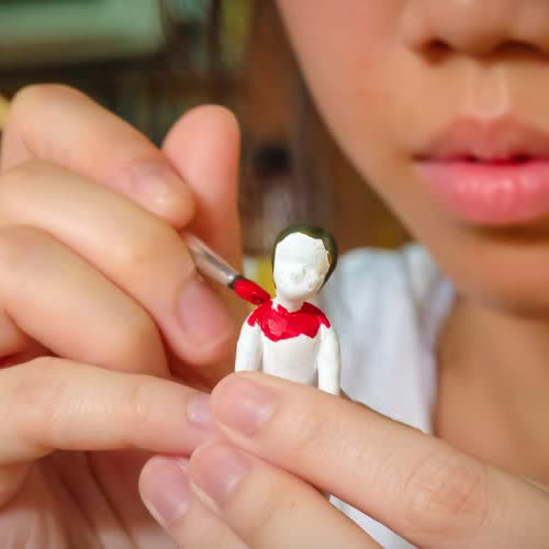 | คำอธิบาย : การทำตุ๊กตาชาววัง ในขั้นตอนที่ 6 การระบายสีและตกแต่ง ของชาวบ้านบางเสด็จ อ.ป่าโมก จ.อ่างทอง |
