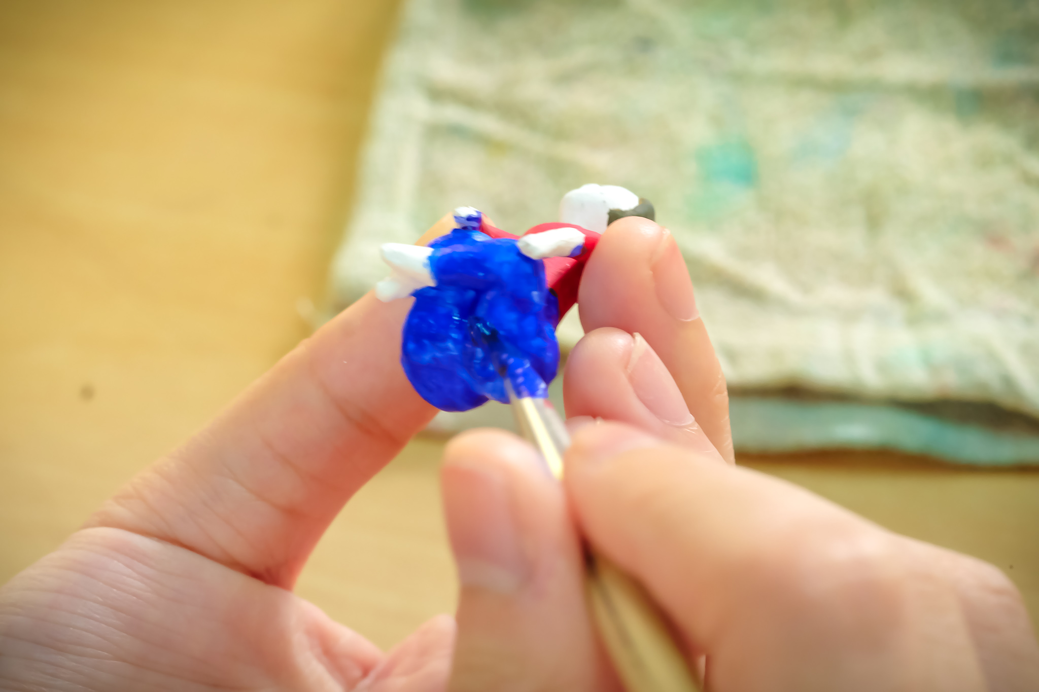 | คำอธิบาย : การทำตุ๊กตาชาววัง ในขั้นตอนที่ 6 การระบายสีและตกแต่ง ของชาวบ้านบางเสด็จ อ.ป่าโมก จ.อ่างทอง |