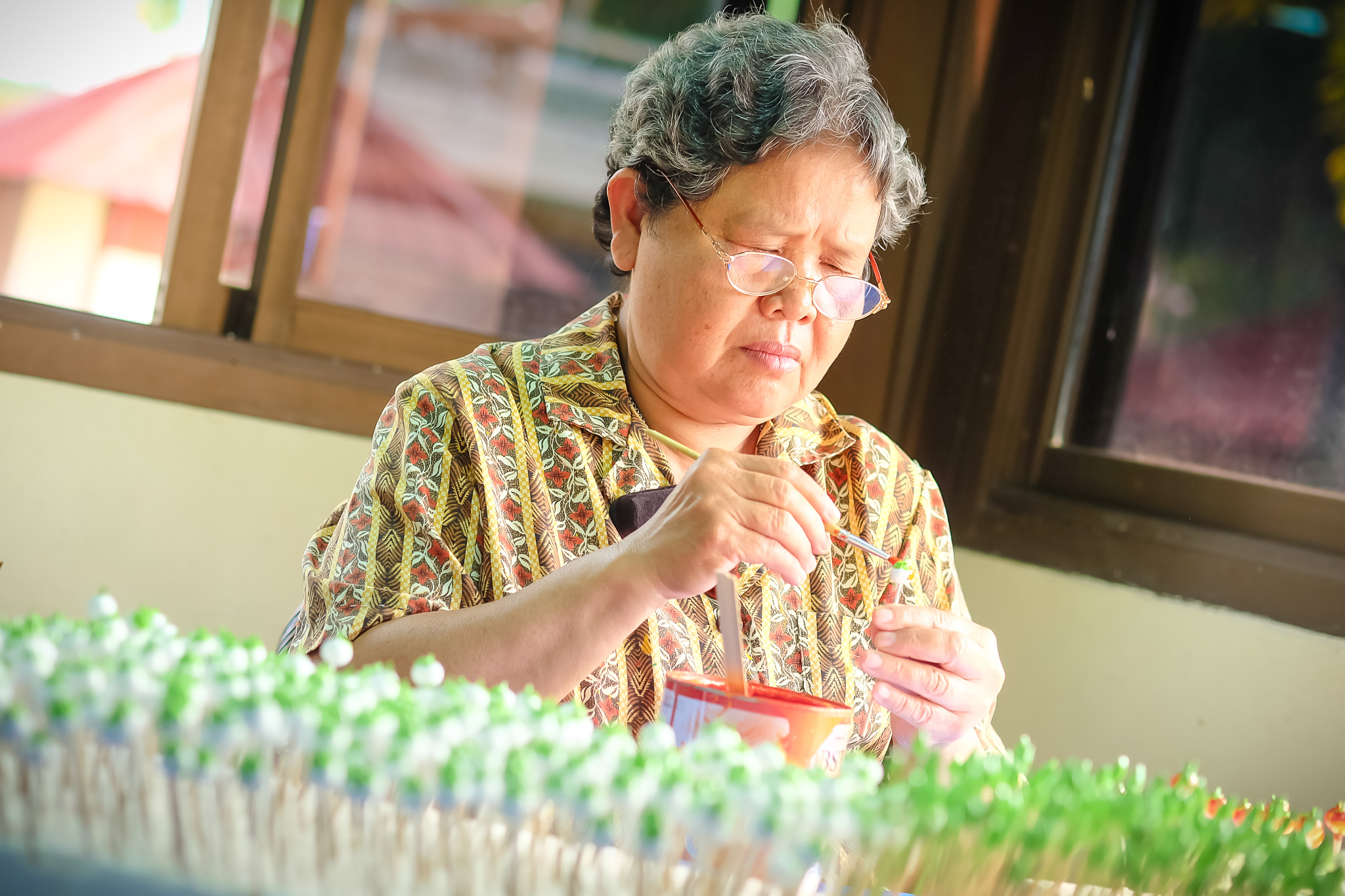 | คำอธิบาย : การทำตุ๊กตาชาววัง ในขั้นตอนที่ 6 การระบายสีและตกแต่ง ของชาวบ้านบางเสด็จ อ.ป่าโมก จ.อ่างทอง |