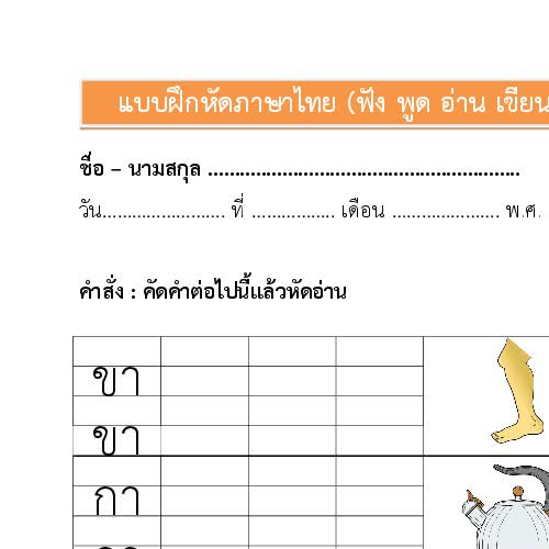 | คำสำคัญ : ความรู้ทั่วไป, แบบฝึกหัด, สิ่งรอบตัว, เสริมทักษะ, ตัวอักษรภาษาไทย, บัตรคำ, ปฐมวัย, คำพื้นฐาน, คำศัพท์ไทย, บัตรคำศัพท์ |