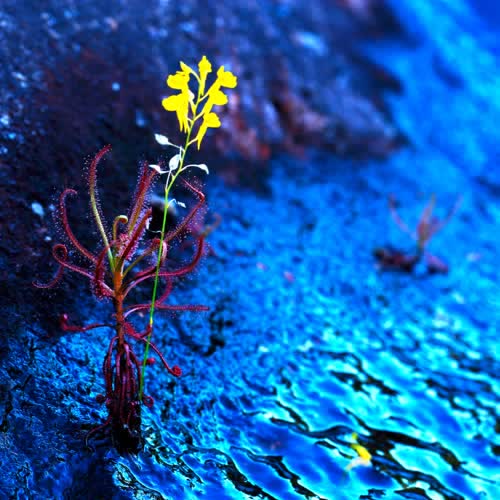| คำอธิบาย : ดอกสร้อยสุวรรณา ซึ่งเป็นพืชล้มลุกกินแมลง พบเห็นได้ตามแอ่งน้ำ ขึ้นอยู่เคียงข้าง ต้นหยาดน้ำค้าง ซึ่งเป็นพืชกินแมลงเช่นกัน |