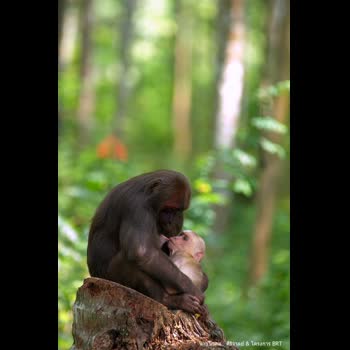 | คำอธิบาย : ลิงเสนเป็นลิงสายพันธ์หนึ่งที่มักพบอยู่ในป่าลึก และมีนิสัยค่อนข้างดุร้าย แต่สำหรับที่วัดถ้ำเขาแดง ลิงเสนฝูงนี้มักลงมาหากินอยู่ในบริเวณวัดเป็นฝูงใหญ่ โดยในฝูงจะมีลูกเล็กๆอยู่หลายตัว เรามักพบเห็นการแสดงออกของแม่ลิงต่อลูกน้อยที่เป็นภาพประทับใจเช่นนี้เสมอๆ ในบริเวณชายป่าเชิงเขาด้านหลังวัด |