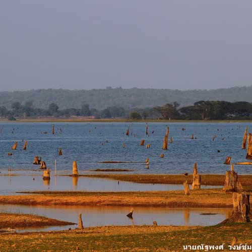 | คำอธิบาย : เมื่อยามที่น้ำเหนือเขื่อนสิริธรลดระดับลง เราจะพบเห็นร่อยรอยของผืนป่าขนาดใหญ่ที่เคยอยู่ที่บริเวณนี้ ภาพนี้จึงเป็นการกระตุ้นให้มาช่วยกันปกป้องผืนป่าที่มีค่าของไทยก่อนที่จะเหลือแต่ตอเช่นนี้ |
