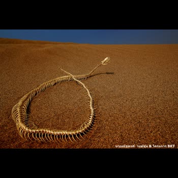 | คำอธิบาย : ในปัจจุบันโลกของเราร้อนขึ้นเป็นอย่างมาก ภาพนี้จึงเป็นการกระตุ้นให้มาช่วยกันลดปัญหาโลกร้อนกันตั้งแต่วันนี้ ก่อนที่จะมีแต่ทะเลทราย |