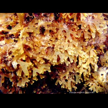 | คำอธิบาย : ภาพถ่ายใต้น้ำของสาหร่ายทะเลสีน้ำตาลชื่อ Dictyota stolonifera E.Y. Dawson ที่พบบริเวณโขดหินใต้น้ำของแนวหินรอบนอกของหาดคลองหิน เกาะลันตาใหญ่ สาหร่ายชนิดนี้เติบโตบนโขดหินโดยตรงและทำหน้าที่เป็นแหล่งหลบภัยให้กับสิ่งมีชีวิตขนาดเล็กอื่นๆอีกหลายชนิด |