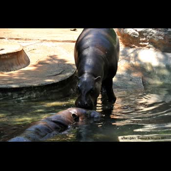 | คำอธิบาย : ฮิปโปโปเตมัสแคระ Hexaprotodon liberiensis\ความสูงเกือบ 1 เมตร น้ำหนักประมาณ 160 - 180 กิโลกรัม หลังโค้งขึ้น ก้นลาดต่ำลง ฮิปโปแคระมีหัวกลมกว่าฮิปโป ใหญ่ เบ้าตาอยู่ด้านข้าง ตามลำตัวเกือบไม่มีขน มีขนเพียงไม่กี่เส้นที่ริมฝีปากและที่หาง หนังของมันชาวพื้นเมืองชอบนำไป ทำเป็นแส้ เนื้อของมันเหมือนเนื้อหมูป่า ชอบอยู่ตามลำน้ำและหนองบึงในป่าดงดิบ ไม่ชอบอยู่เป็นฝูง มักอยู่เดี่ยวหรืออยู่คู่ จะขึ้นจากน้ำตอนกลางคืน เดินหากินไปตามที่เคยเดินจนดูคล้ายเดินไปในช่องอุโมงค์ เวลาตกใจมันมักเข้าไปซ่อนในป่ารก แทนที่จะหนีลงในน้ำ ฮิปโปโปแคระตั้งท้องนาน 190 - 210 วัน ลูกที่ออกมาใหม่หนัก 3 - 4.5 กิโลกรัม และมีอายุยืนราว 35 ปี |