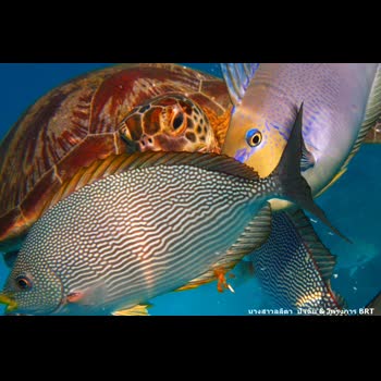 | คำอธิบาย : บรรดาเต่าและปลา กำลังว่ายบนไปมาเสมือนต้องการมาเล่นและเป็นเพื่อนกับเรา |