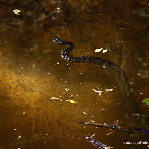 | คำอธิบาย : งูสิงตัวนี้ กำลังรอเหยื่อผู้โชคร้ายที่จะป็นอาหารอยู่ใต้น้ำ ภาพนี้แสงสวย และดูลึกลับดี |