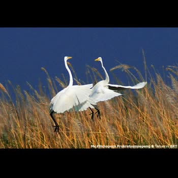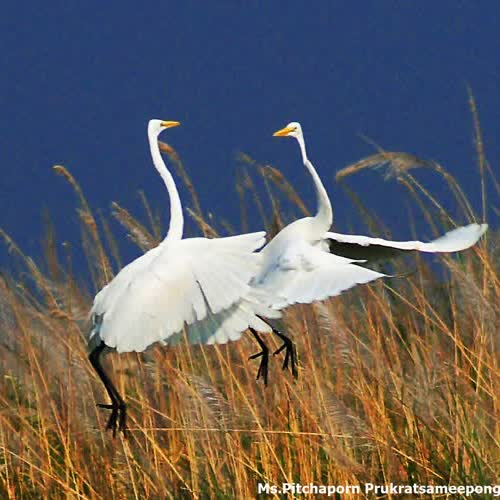 | คำอธิบาย : ลีลาการต่อสู้ของนกกระยาง 2 ตัว บนฉากหลังของทิวอ้อ และฟ้าสีความ งดงามดุจภาพเขียนสีอันงดงาม |