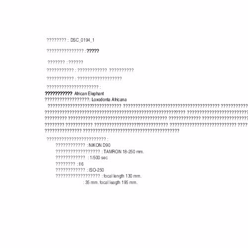 คำอธิบาย : ช้างแอฟริกา African Elephant Loxodonta Africana เป็นสัตว์บกที่มีขนาดใหญ่ที่สุด มีลักษณะคล้ายช้างเอเชียจะแตกต่างที่ใบหู ช้างแอฟริกาจะมีใบหูที่ใหญ่มากมีรูปร่างคล้ายพัดทำหน้าที่ช่วยโบกพัดเพื่อระบายความร้อน ผิวหนังมีลักษณะหยาบย่นเป็นรอยอย่างเห็นได้ชัดเจน สีผิวของมันจะไม่เป็นสีดำเหมือนช้างเอเชีย แต่มีสีน้ำตาล เนื่องจากว่าช้างแอฟริกาชอบนอนแช่ปลักโคลน เพราะฉะนั้น สีผิวของมันจึงเปลี่ยนเป็นสีเทา และที่แปลกกว่าช้างเอเชียคือ ทั้งตัวผู้และตัวเมียจะมีงาเหมือนกัน ส่วนช้างเอเชียจะมีงาเฉพาะตัวผู้เท่านั้น |